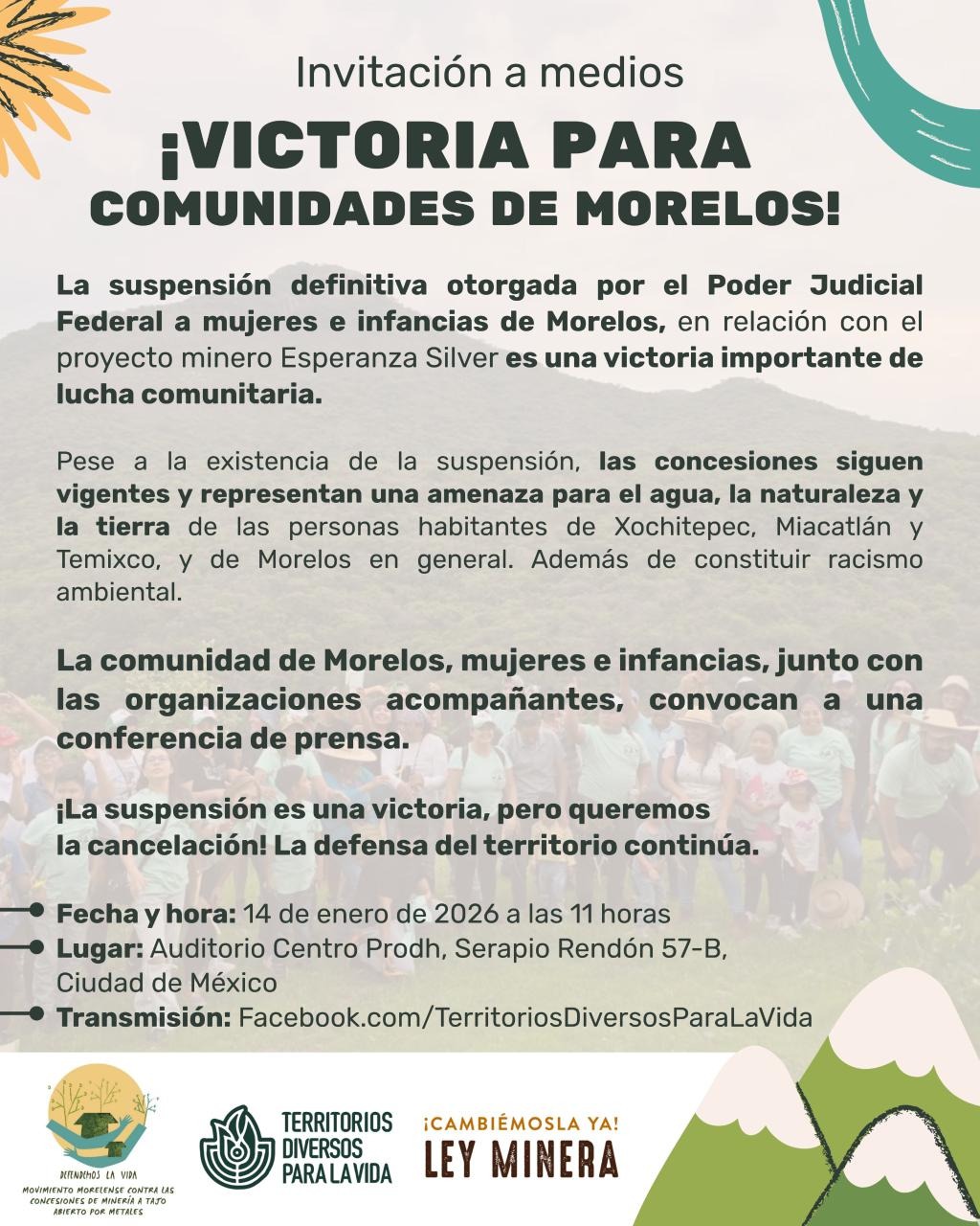 Para informar sobre este tema, la comunidad, mujeres, infancias y organizaciones convocaron a conferencia de prensa este 14 de enero de 2026 a las 11:00 horas, en el auditorio “Chuche Maldonado” del Centro Prodh (Serapio Rendón 57-B, CDMX).