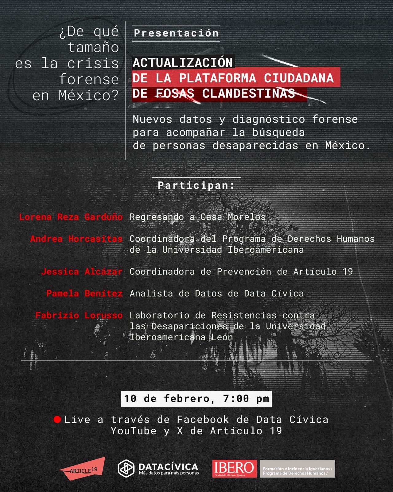 Para conversar sobre la magnitud de la crisis forense en México, Article 19 México y Centroamérica invita a la presentación de los datos actualizados de la Plataforma Ciudadana de Fosas.