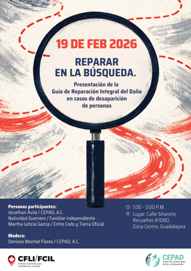 El Centro de Justicia para la Paz y el Desarrollo (CEPAD) invita a la presentación de la guía “Reparar en la búsqueda”, donde se hablará sobre reconocer que el daño causado por la desaparición es profundo, continuo y exige respuestas integrales. En este espacio madres buscadoras compartirán experiencias de reparación del daño con otras familias […]