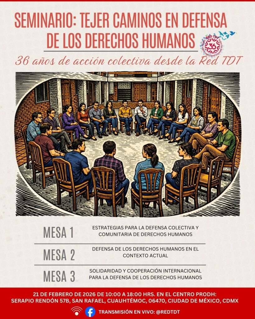 La Red Nacional de Organismos Civiles de Derechos Humanos “Todos los Derechos para Todas, Todos y Todes” (Red TdT) invita al seminario “Tejer caminos en defensa de los derechos humanos”. Esto en el marco para celebrar 36 años de acción colectiva de la Red. Habrá tres mesas para hablar de estrategias para la defensa comunitaria […]