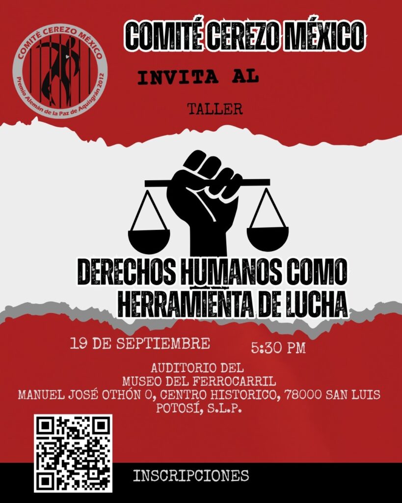 El Comité Cerezo México invita a la presentación de libro y taller los derechos humanos como herramienta de lucha en San Luis Potosí. El objetivo es que las y los participantes conozcan qué son los derechos humanos, sus diferentes concepciones, el sistema internacional de los derechos humanos y cómo puede ser una herramienta para quienes […]