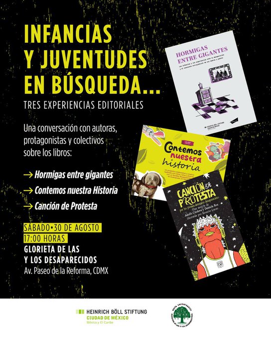 En el marco del Día Internacional de las Víctimas de Desaparición Forzada, en la Glorieta de las y los desaparecidos habrá un espacio para infancias y juventudes en búsqueda. En el espacio se presentarán tres trabajos editoriales dirigidos a esta población, entre ellos: Hormigas entre gigantes y Canción de protesta. Además, el colectivo para búsqueda […]