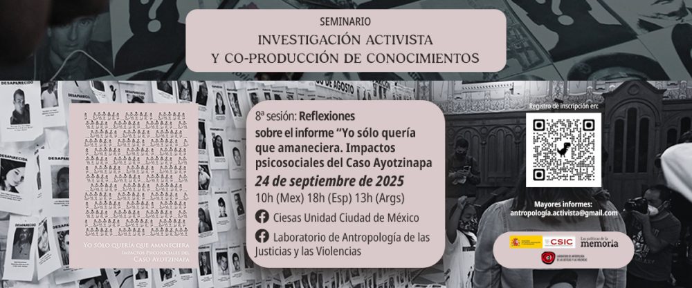 La Dirección Regional del CIESAS CDMX invita a Reflexiones sobre el informe Yo sólo quería que amaneciera. Impactos psicosociales del Caso Ayotzinapa, octava sesión del Seminario Antropología Activista y Co-producción de conocimientos. El seminario en esta primera etapa tendrá como propósito principal crear un espacio de diálogo de saberes entre la academia activista y los colectivos de […]
