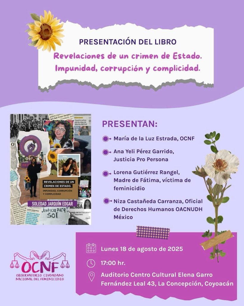 El Observatorio Ciudadano Nacional del Feminicidio invita a la presentación del libro“Revelaciones de un crimen de Estado. Impunidad, corrupción y complicidad”, de Soledad Jarquín. En el libro, la autora hace un recorrido desde una perspectiva de género sobre las trayectorias que realizan familiares de víctimas. Es una mirada hacia el sentir de las personas que […]