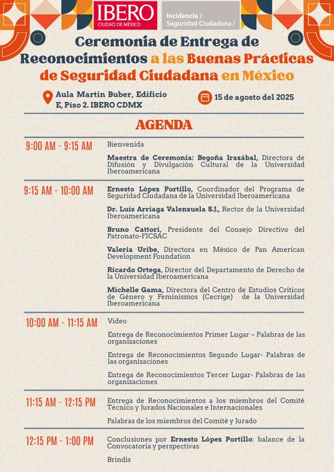 El Programa de Seguridad Ciudadana de la Universidad Iberoamericana, Ciudad de México, invita a la Ceremonia de Entrega de Reconocimientos a las Buenas Prácticas de Seguridad Ciudadana en México. La institución premiará a las iniciativas, proyectos diseñados y propuestas ejecutadas con alguna evidencia de impacto o resultados, cuyas principales temáticas fueron reinserción de jóvenes y […]