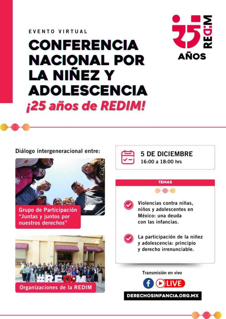En el marco de su celebración por los 25 años defendiendo los derechos de niñas, niños y adolescentes, la Red por los Derechos de la Infancia invita a la Conferencia Nacional por la Niñez y Adolescencia. Este es un espacio de diálogo intergeneracional para reconocer avances, denunciar deudas y colocar al centro las voces de […]