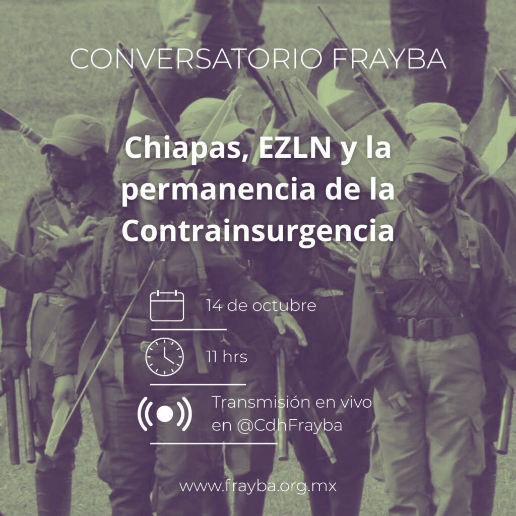 El Centro de Derechos Humanos Fray Bartolomé de las Casas (Cdh Frayba) invita al conversatorio “𝐂𝐡𝐢𝐚𝐩𝐚𝐬, 𝐄𝐙𝐋𝐍 𝐲 𝐥𝐚 𝐩𝐞𝐫𝐦𝐚𝐧𝐞𝐧𝐜𝐢𝐚 𝐝𝐞 𝐥𝐚 𝐂𝐨𝐧𝐭𝐫𝐚𝐢𝐧𝐬𝐮𝐫𝐠𝐞𝐧𝐜𝐢𝐚” Participan: Diana Itzú, de la Red Ajmaq; Raúl Romero, de la Red Universitaria Anticapitalista (RUA); y Pedro Faro, de Cdh Frayba. Será el 14 de octubre a las 11:00 horas y se […]